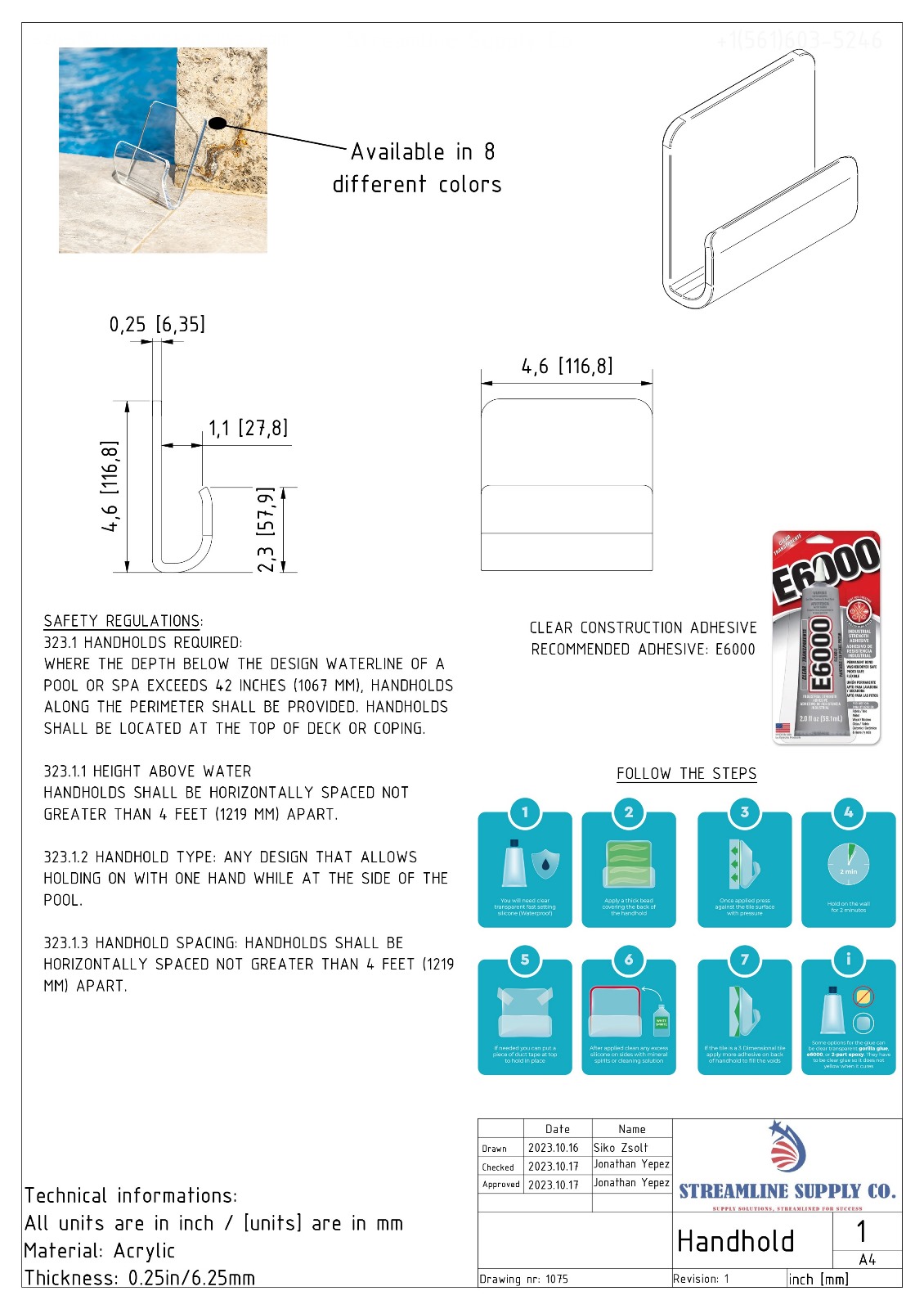 Enhance pool safety and compliance with the Streamline Supply Co. Handhold. Engineered for superior stability and grip, this innovative product prevents water damage, mold, and delamination. Its easy installation and durable design make it the perfect solution for long-lasting performance. Upgrade your pool safety today with our reliable and stylish handhold.